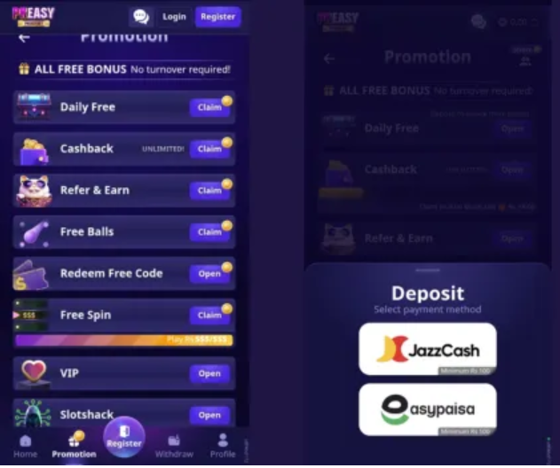 Additionally, pkeasy game gives you daily tasks to complete in exchange for rewards. These tasks are very simple and can include things like logging in every day, playing a certain number of games, or making your first deposit. Furthermore, completing tasks consistently earns you bonus coins and cash rewards. Moreover, task rewards are a great way to earn extra money even on days when you do not win any games. Therefore, make sure you check the task section every day so you do not miss out on any earning opportunities.
